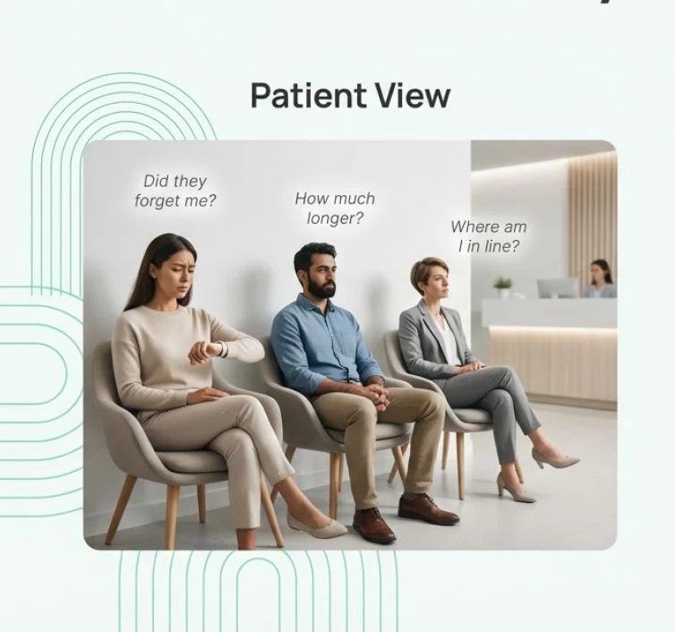 Patients and clients stuck in packed waiting areas with no visibility into wait times.