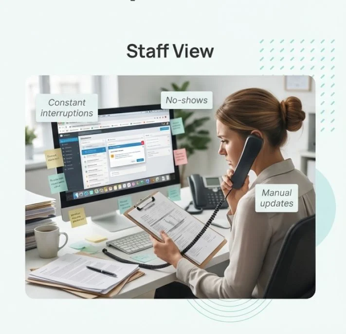 Reception teams drowning in phone calls, walk-ins, and scheduling conflicts.